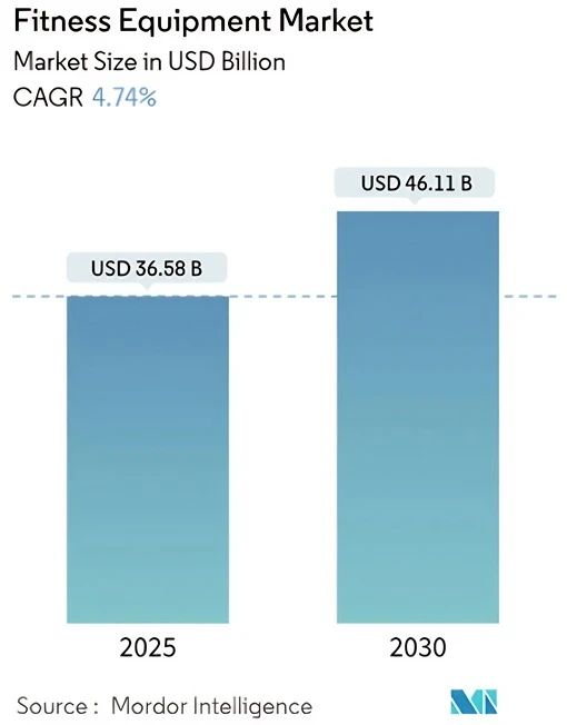 随着全球健康意识的觉醒,健身器材行业正迎来前所未有的增长契机。据Mordor Intelligence最新市场预测显示,全球健身器材市场规模将在2025年突破365.8亿美元亿美元,并有望在2030年攀升至461.1亿美元亿美元,年均增长率4.74%。这一增长态势不仅反映了健康生活方式的普及,也揭示了技术创新和市场需求变化对行业的深远影响。